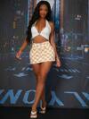FRIFUL 女士纯色弹力腰荷叶边长款牛仔裙