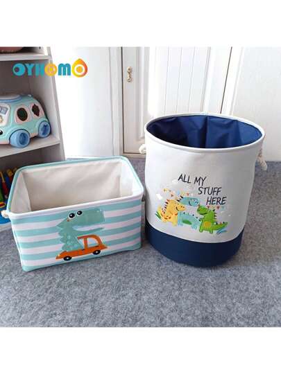 OYHOMO 可折叠布艺洗衣篮 可爱设计收纳篮 带手柄 家居装饰篮 适用于玩具、衣服、毯子、浴室、客厅、卧室收纳 - 恐龍 - 查看 1