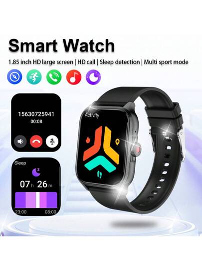 1入組時尚電子智能手錶,適用於男女款配備黑色矽膠錶帶,大觸控螢幕,多種運動模式,支援攝影控制,社群媒體訊息提醒,擅長日常和運動使用,適合當作禮物 - 黑色 - 查看 2