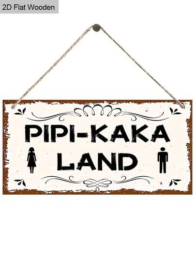 1 件迷人复古厕所木制标志 - “Pipi-Kaka Land”,有趣的浴室标志,可爱的厕所门装饰墙艺术标志,适合家庭浴室装饰,农舍挂牌,用于厕所架 - 彩色 - 查看 6