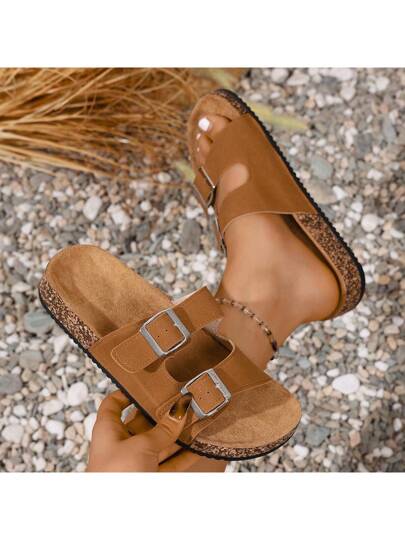 休闲度假海滩舒适百搭简约情侣款 - 男士拖鞋 - 棕色 - 查看 1