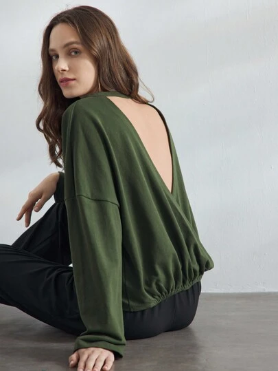 Ocili 女士柔软休闲棉质健身风格睡衣上衣 - 綠色 - 查看 1