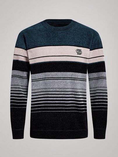 Officeau 男士红色加厚条纹羊羔绒针织衫,冬季长袖上衣 - 青碧色 - 查看 1