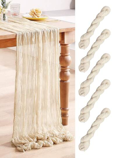 5件装米色褶皱折叠桌旗,白色桌布,派对桌布,生日派对用品,生日礼物,生日用品,白色纱布,派对餐桌中心装饰桌旗,宴会装饰,婚礼回礼,桌布,纯色桌旗 - 米色 - 查看 6