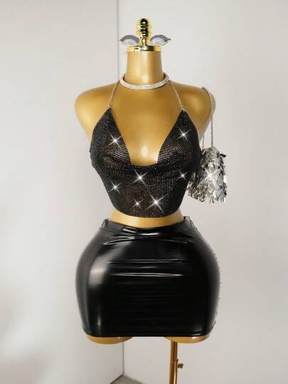 Mistrie 女士时尚细肩带链条性感露背优雅风格吊带背心上衣 - 黑色 - 查看 1