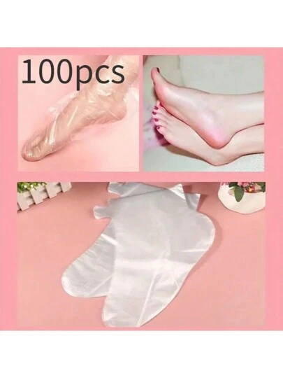 100 件/包一次性透明脚袜塑料脚膜用于足部皮肤护理、袋子、收纳、储存 - 白色 - 查看 1