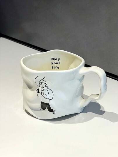 一体式创意不对称造型马克杯,大容量潮流陶瓷杯,家用咖啡杯,牛奶杯,甜品杯, - 彩色 - 查看 10
