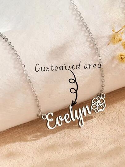一件式定制名字项链吊饰花朵个性化不锈钢金项链,定制名字项链,非常适合情侣、家庭、生日、周年纪念日、母亲节和其他特殊场合,金色,时尚 - 彩色 - 查看 1
