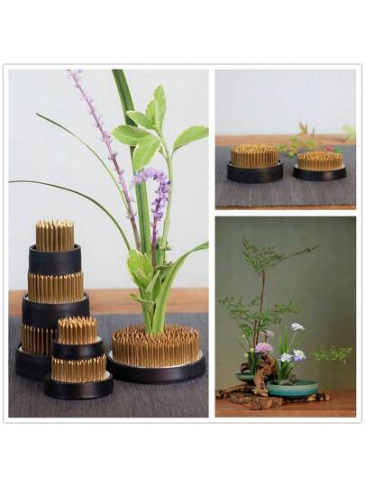 一把劍形插花工具,穩定花茎,傳統中日插花設備,銅針和底座,插花花瓶座 - 金色 - 查看 7