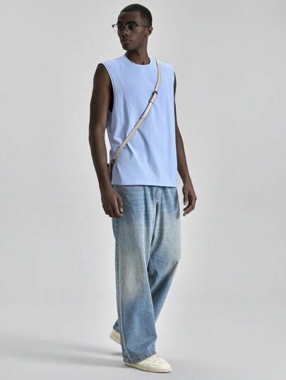 Ontre 2025秋冬季男士返校、万圣节、圣诞节、商务休闲、复古百搭基础款服装,纳什维尔休闲纯色无袖背心,适合独立日、毕业典礼、日常穿着、可爱休闲通勤、运动服 - 藍色 - 查看 1