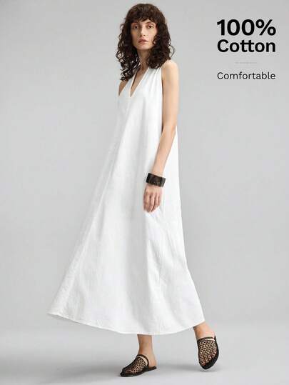 Ontre 优雅V领象牙白中长连衣裙,别致浪漫的法式风格,采用奢华面料,适合商务、休闲、办公、婚礼宾客、夏季、度假、通勤等多种场合。