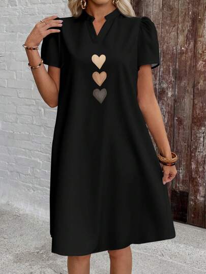 EMERY ROSE 女士心形印花短袖夏季休闲度假连衣裙,送给母亲的礼物,夏季假期,女士度假服装 - 彩色 - 查看 1