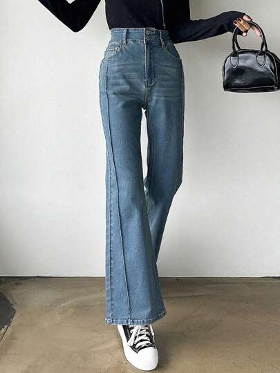 DAZY 女式喇叭牛仔裤 - 霧霾藍 - 查看 1