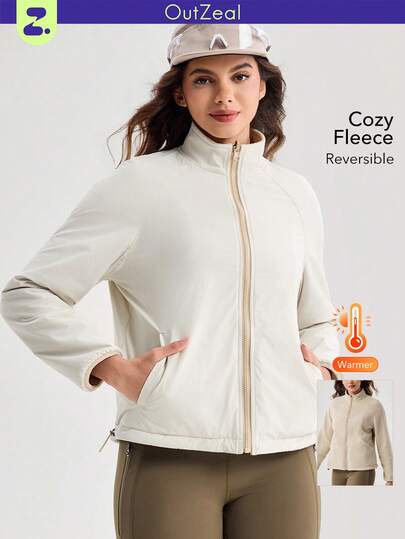 OutZeal 女士冬季户外夹克 徒步露营保暖双面抓绒立领拉链户外上衣 - 卡其色 - 查看 2