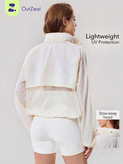 OutZeal 女士防晒夹克 露营徒步 背部网眼设计 立领 拉链户外上衣 - 黃色 - 查看 10