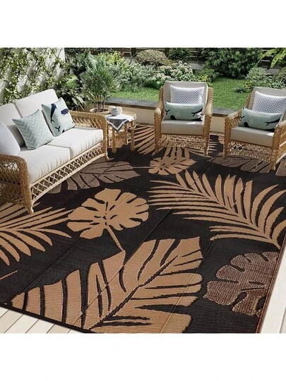 Outdoor Rug 245x305cm Extra Large Garden Rug Waterproof Plastic Straw Garden Mat Carpet UV Resistant Reversible Camping Rugs Balcony Deck Backyard Porch Beach BBQ - 黑色 - 查看 1