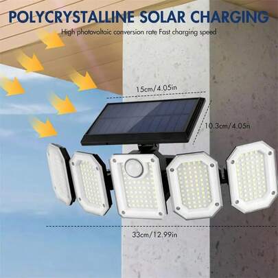 Outdoor Solar Lamp, 300 LED 7000K Motion-Sensing Outdoor Lamp (With Remote Control), 5 Adjustable Lamp Heads Safety Lamp, IP65 Waterproof LED Floodlight, Suitable For Garages, Courtyards, Gardens