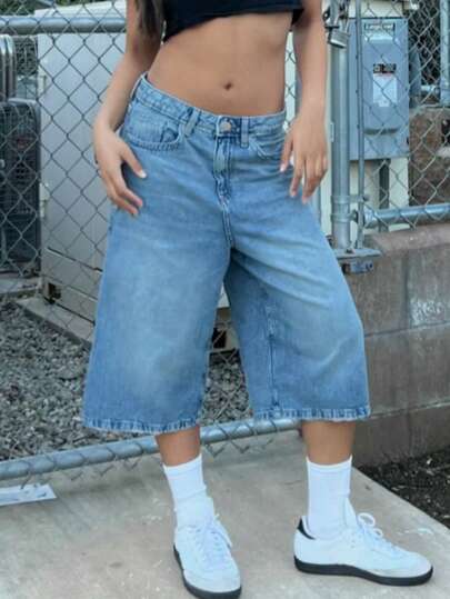 破洞街头风宽松牛仔百慕大短裤 - 淺色水洗藍 - 查看 2