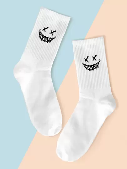 卡通圖案襪子 - 白色 - 查看 1