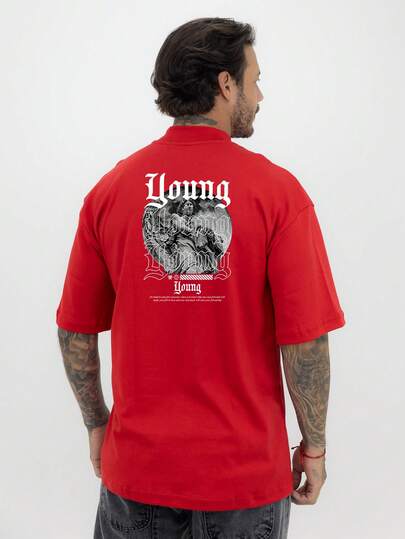 Oversized T-Shirt With High Neck And Print, Young Streetwear, Unisex Cotton