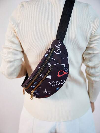 牛津布腰包,女式大容量腰包金屬裝飾肩背包