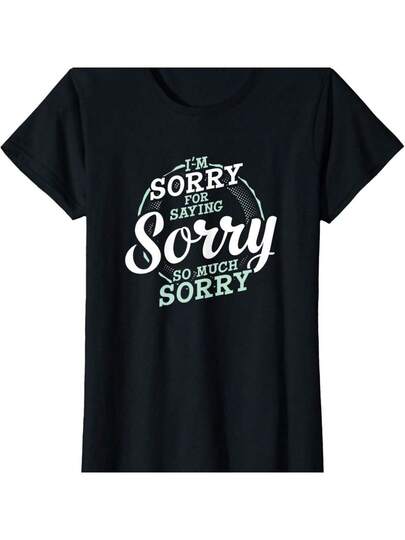 I'm Sorry For Saying Sorry So Much Funny Apology Ladies' Crewneck T-Shirt - 黑色 - 查看 1