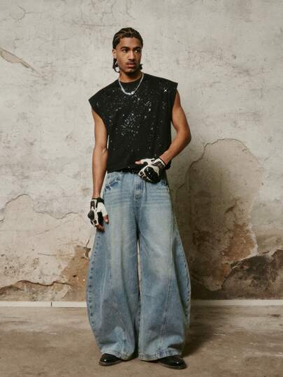 PAVTROS 男士休闲亮面圆领背心,夏季 - 黑色 - 查看 1