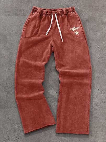 PAVTROS 男士松紧腰抽绳休闲复古百搭印花运动裤
