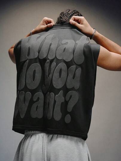 PAVTROS 男士字母印花无袖圆领背心 - 黑色 - 查看 6