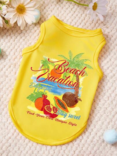 PETSIN 1件沙滩水果字母印花宠物背心,休闲风格,柔软透气,黄色