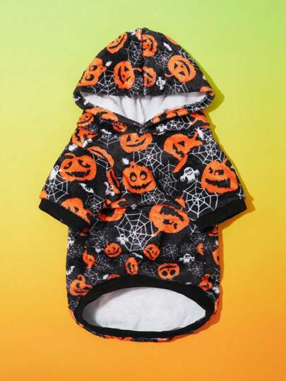 PETSIN 一件宠物万圣节南瓜蜘蛛连帽法兰绒连帽衫