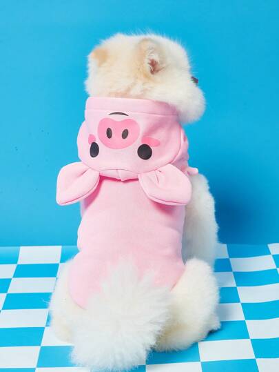 PETSIN 1 件套猫狗无袖连帽衫,可爱粉色小猪卡通 3D 角色扮演服装宠物运动衫 - 彩色 - 查看 3