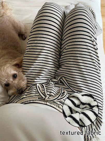 POPSWAY 大码针织黑白条纹毛绒运动裤 - 黑與白 - 查看 6