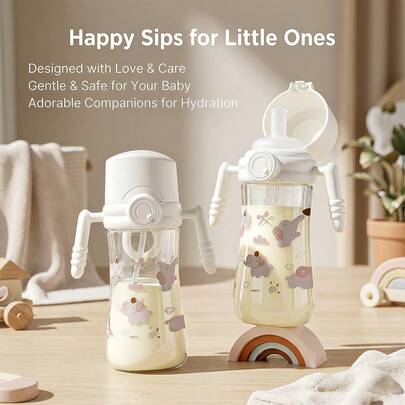 PP材质吸管杯,防胀气吸管杯,带手柄,适用于婴幼儿,通过FDA检测认证 - 300毫升 - 白色 - 查看 1