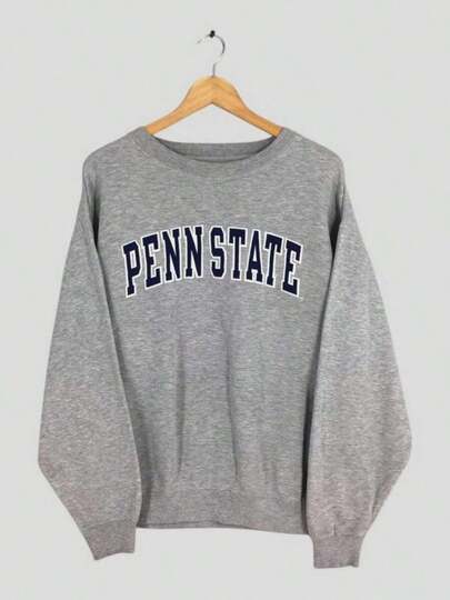 PSU Themed Pullover With Printed Logo & Spell Out Design Unisex Vintage Crew Neck Sweatshirt Classic College Culture Tops For Men And Women Ideal Casual Outfit For Gatherings Campus Style Nittany Lions Long Sleeve Sweatshirt