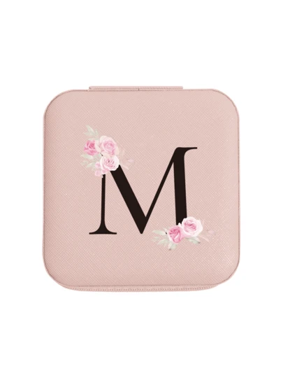 Pu皮質旅行珠寶盒,印有大寫字母和玫瑰圖案,伴娘禮物生日禮物適用於女孩和女性 - 玫瑰金 - M - 查看 1