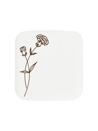 Pu 皮革旅行首飾盒帶素描花朵伴娘禮物女孩和女士生日禮物 - 01-White - 查看 1