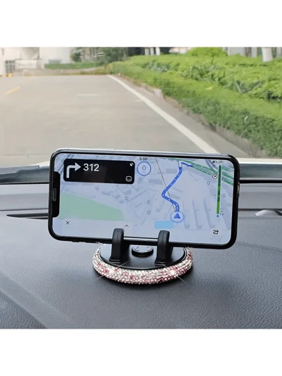 PVC材质水钻车载手机支架,通用仪表盘手机支架,可调节车载GPS支架,可爱旋转夹,适用于横屏和竖屏屏幕 - 彩色 - 查看 1