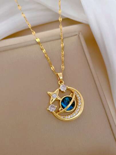 1 件女士精致水钻星星和月亮项链,简约星座颈链,聚会礼物 - 金黃色 - 查看 1