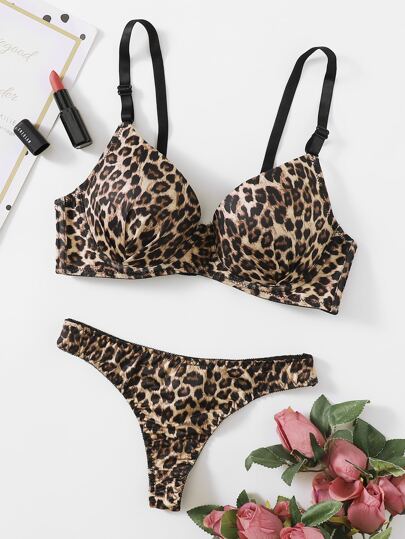 豹紋鋼圈胸圍和內褲情趣內衣套裝 - 彩色 - 查看 1