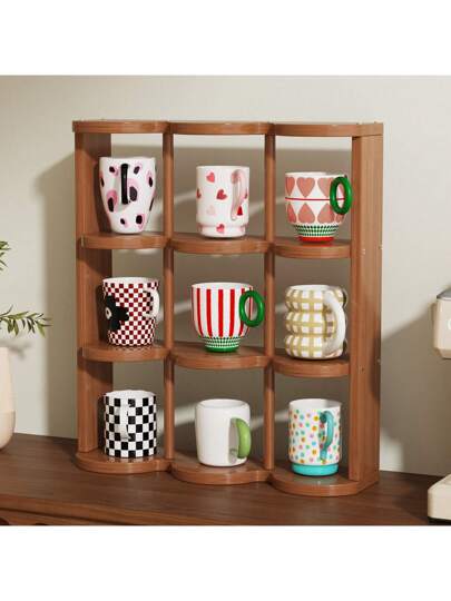 简约竹制九格桌面杯架收纳架中世纪风格家庭办公桌面多层储物架厨房用品家用收纳架 - 彩色 - 查看 1