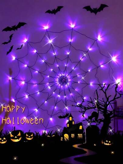 1 件恐怖万圣节 LED 蜘蛛网灯 - 70 个灯泡,8 种模式,USB 供电,适合室内派对和装饰(不含蜘蛛) - 黑色 - 查看 8