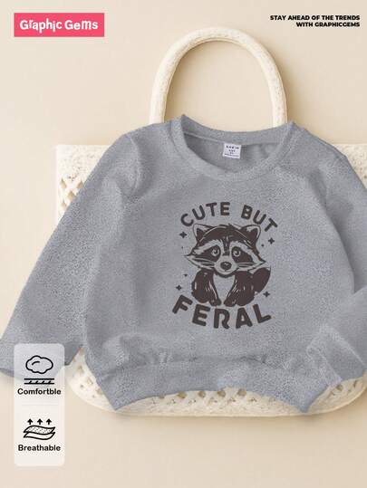 GraphicGems 灰色圆领小男孩浣熊印花卫衣 - 灰色 - 查看 1