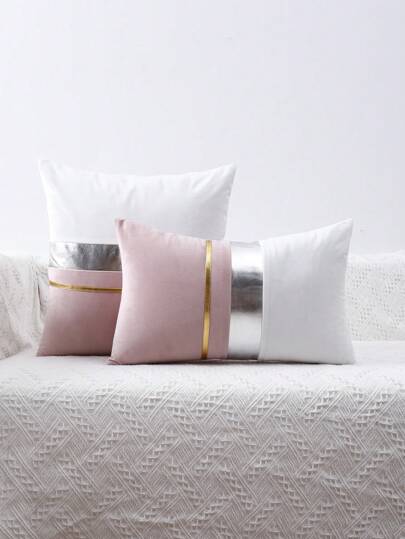 拼布天鹅绒抱枕套、沙发腰垫套 - 粉色 - 查看 1