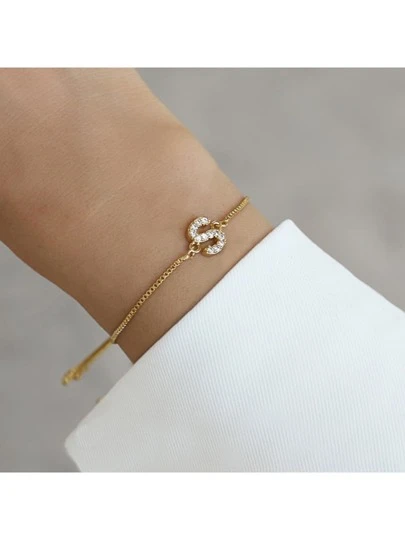 鋪平方晶鋯石A-Z最初手環適合女士字母女士手環 - 金黃色 - 查看 1