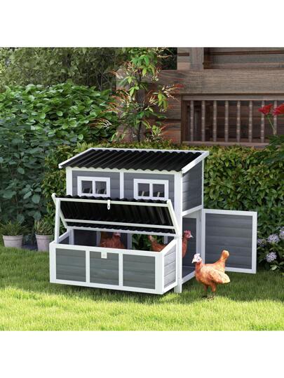 PawHut Wooden Chicken Coop, 39" Chicken House With Nesting Box, Pull-Out Tray, Waterproof Roof, For 4-6 Chickens, Rabbits, Light Gray
