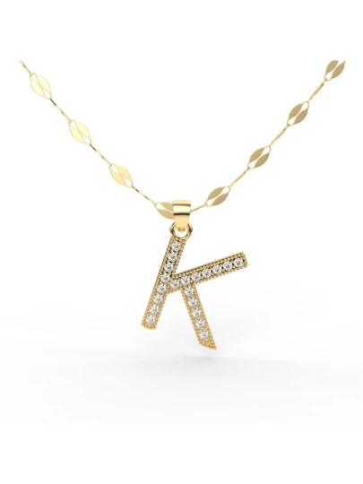 Romantika Jewelry Initial Letter Necklace 10K Carat Gold Italian - K - 查看 1