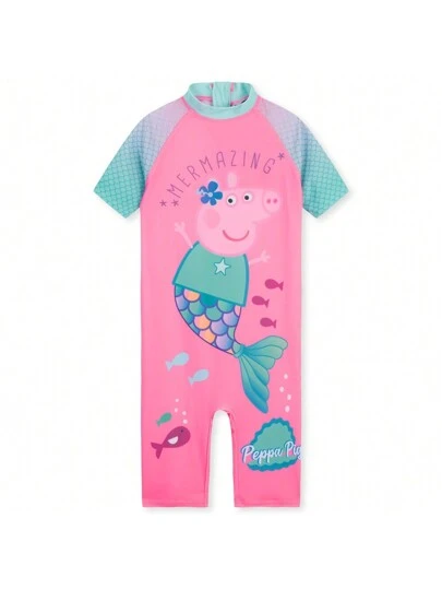 Peppa Pig Swimming Costume Summer Holiday Short Sleeve Swimwear One Piece Swimsuit - 粉色 - 查看 1