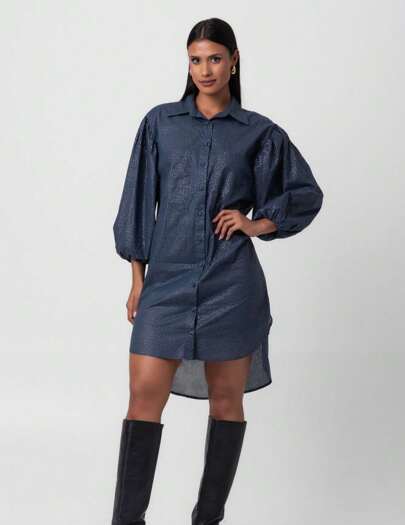 Pequiá Blue Oversized Voile Chemise - 藍色 - 查看 1