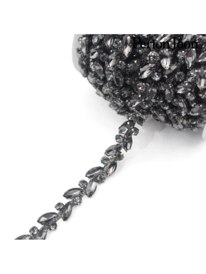 Perlon Joon 1 码树叶干净玻璃水晶链水钻装饰银水晶链装饰婚纱配饰 - 黑色 - 查看 1